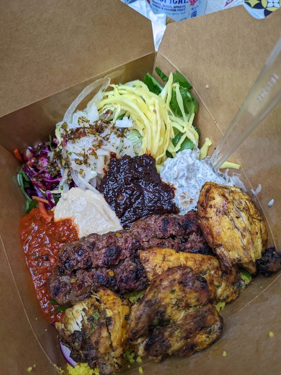 Matina stands out with its diverse menu, which includes crowd-pleasers like the Mixed Chicken and Lamb Wrap, savory Salads, and hearty Mixed Chicken and Lamb on Couscous. If you're in the mood for something lighter, you can opt for the Feta Salad or enjoy a delicious Falafel Wrap. The Momo Chicken, Lamb Shawarma Naan, and Chicken Shish Kebab are also among the favorite dishes that will surely tantalize your taste buds. For those who love a bit of variety, the Noodles with Beef and Momo is a flavorful, satisfying dish. If you prefer something with a bit of zest, the Pork, Picked Red Cabbage, and Sauerkraut offer bold, delicious flavors.